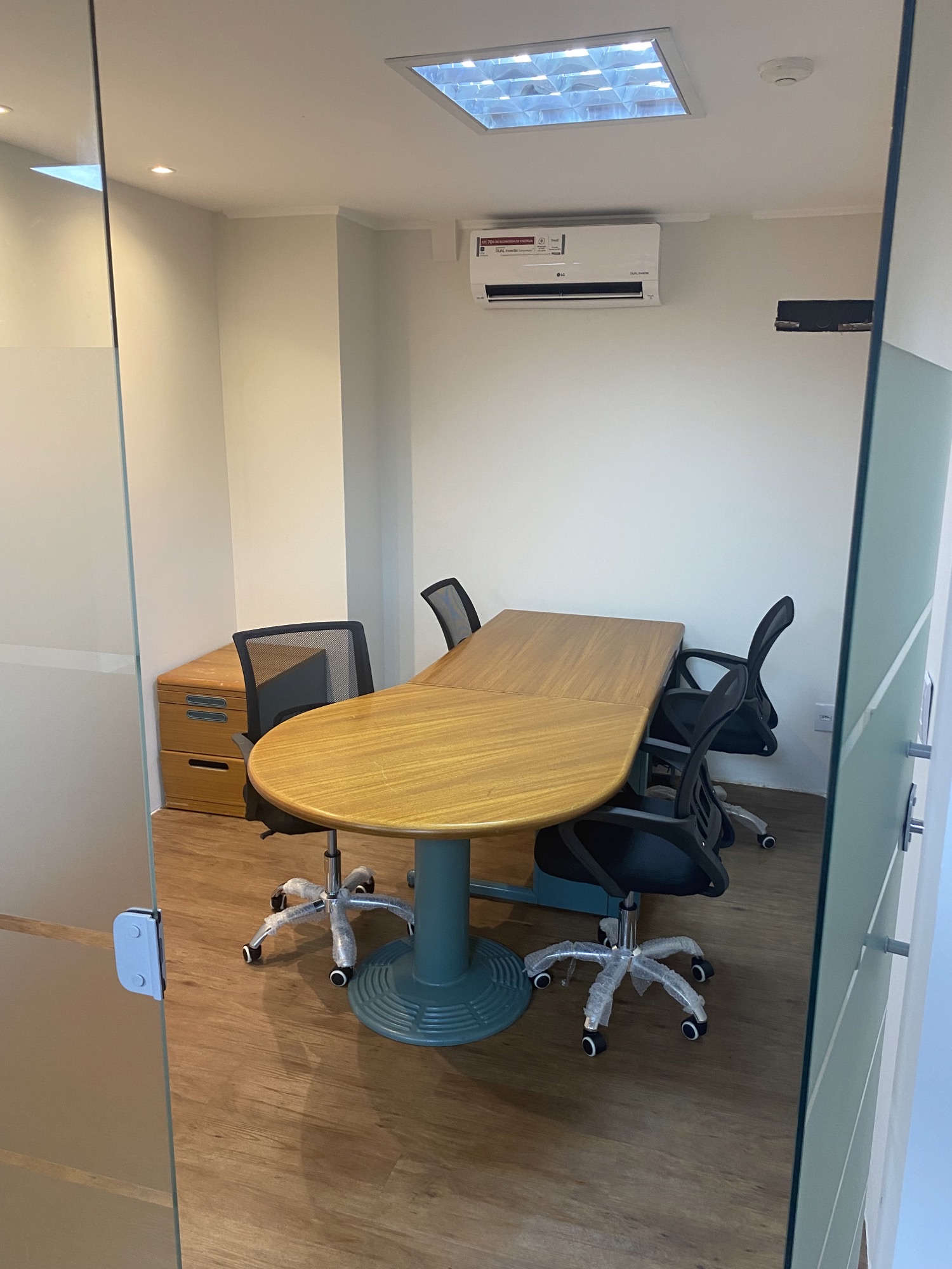 Sala para 4 pessoas, com ar condicionado, quadro branco. Mesa 2,00m x 0,80m.